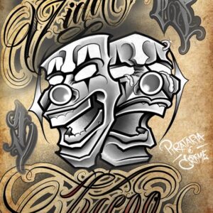 A escrita “Lá vida es 1 Juego” feita por Perini agrega as máscara. Singularidade da vida entre fases em lágrimas de tristeza e sorrisos de felicidade.